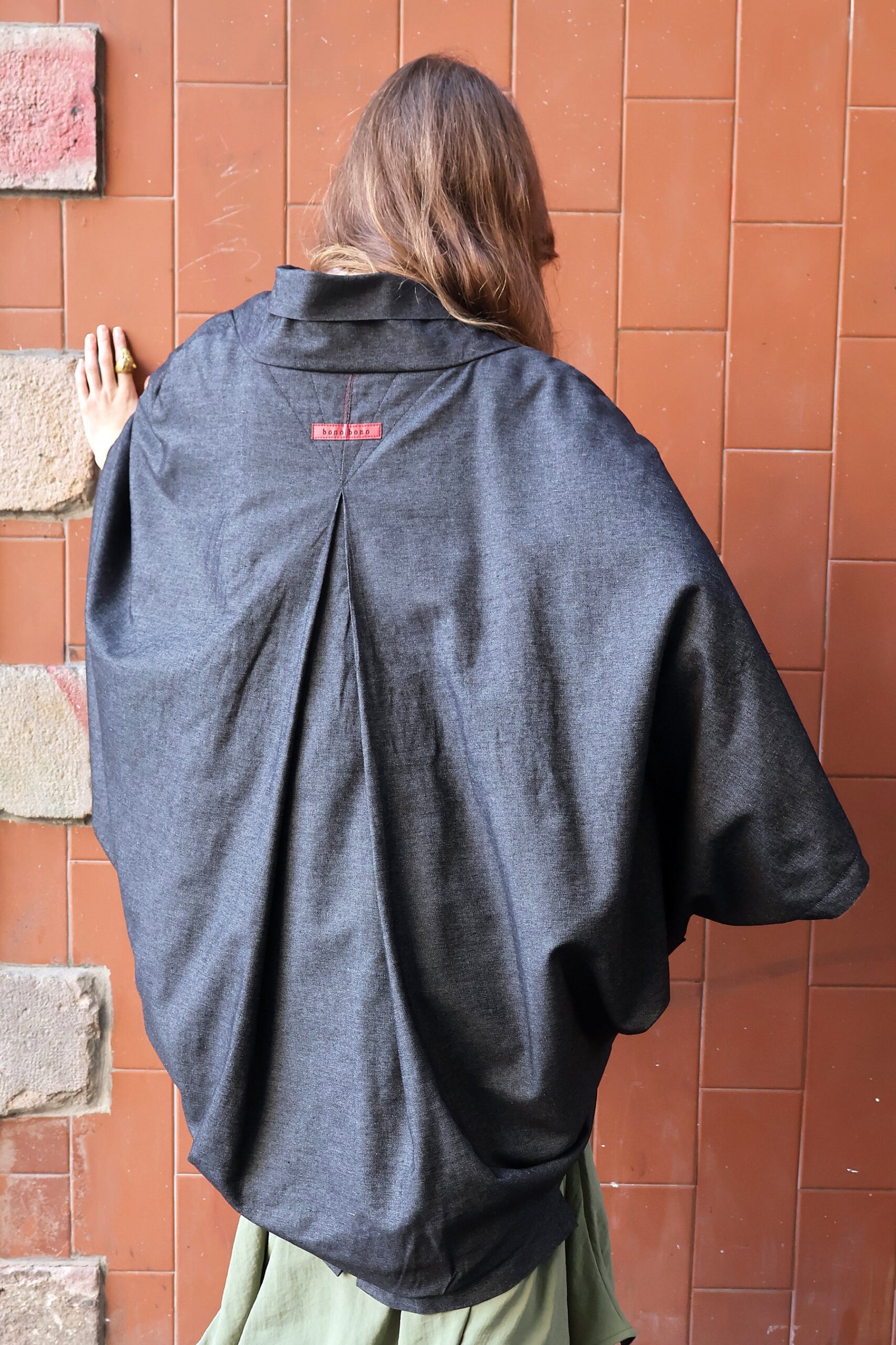 The Long Morgan Cape evolves to become your favorite garment of the season. We have reinterpreted our geometric design with clean lines using exquisite cotton denim on the outside. This fabric not only provides unique visual and tactile richness, but also structures the silhouette with an impeccable drape.