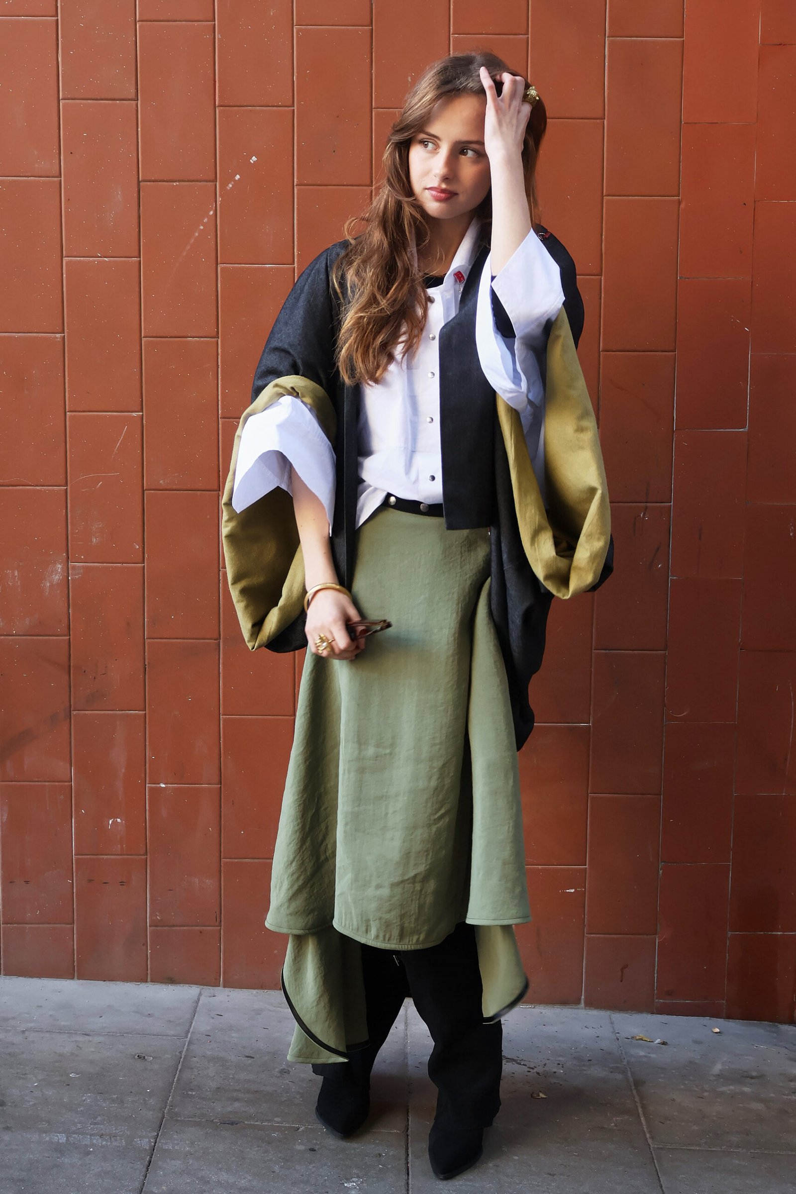 – You can wear it loose or add a belt to accentuate the waist, creating a modern contrast between the front and back.