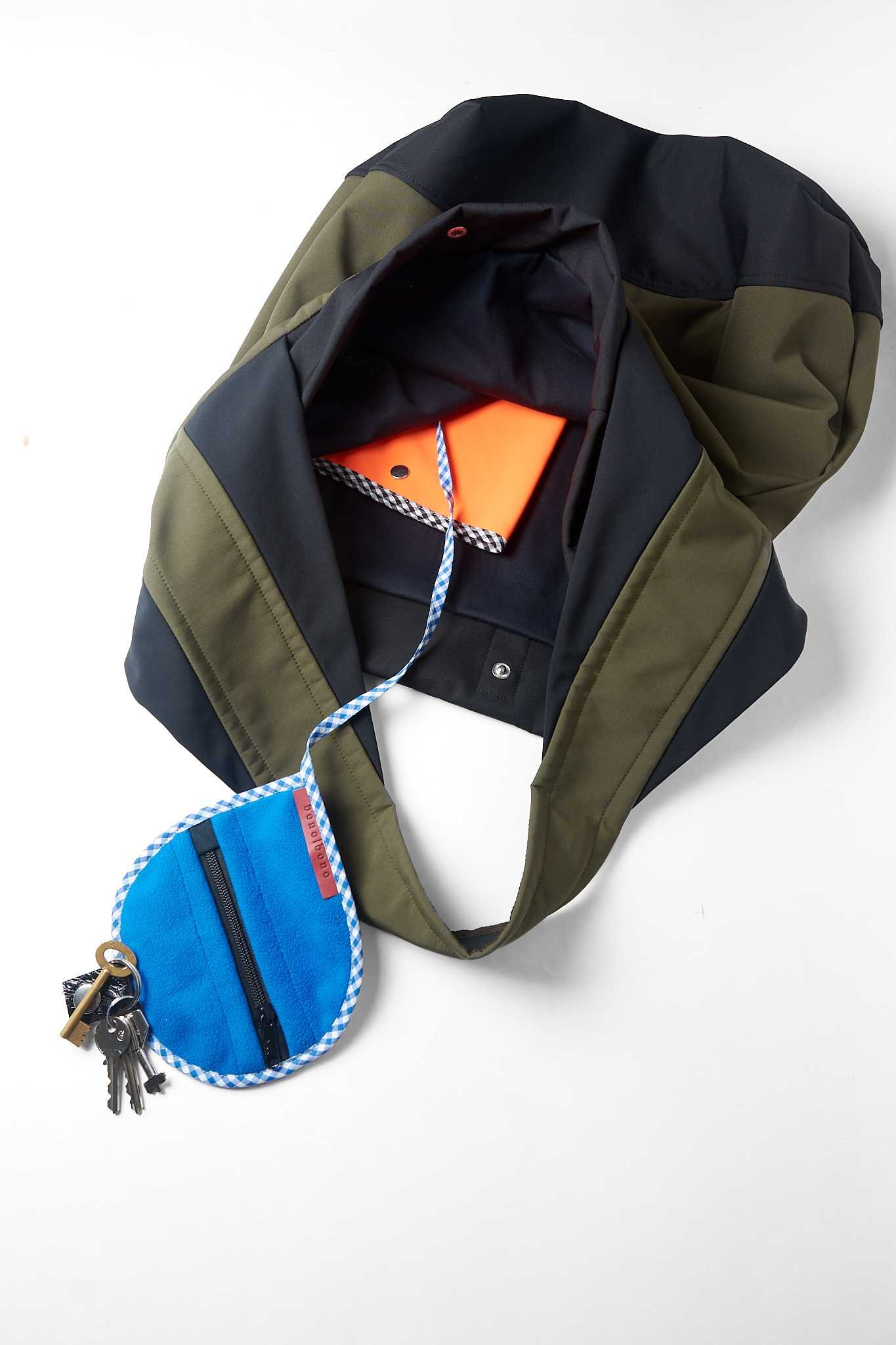 Este bolso nace de la creatividad y la necesidad de no desperdiciar nada. Hemos recuperado los trozos de poliéster de alta calidad de nuestros cortes de chaquetas para dar vida a un accesorio tan práctico como especial. Es la prueba de que el diseño consciente y el estilo pueden, y deben, ir de la mano.