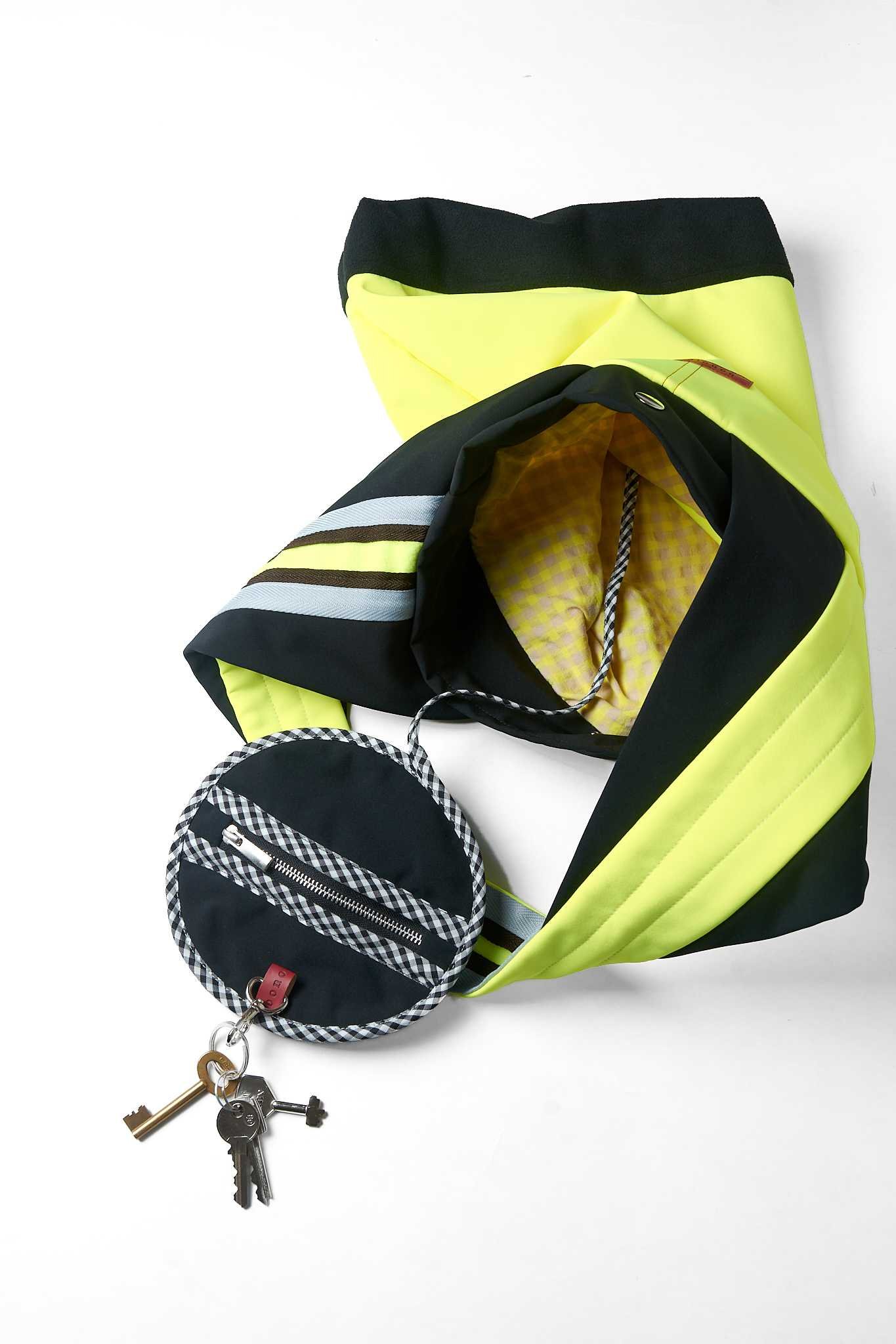 Este bolso nace de la creatividad y la necesidad de no desperdiciar nada. Hemos recuperado los trozos de poliéster de alta calidad de nuestros cortes de chaquetas para dar vida a un accesorio tan práctico como especial. Es la prueba de que el diseño consciente y el estilo pueden, y deben, ir de la mano.