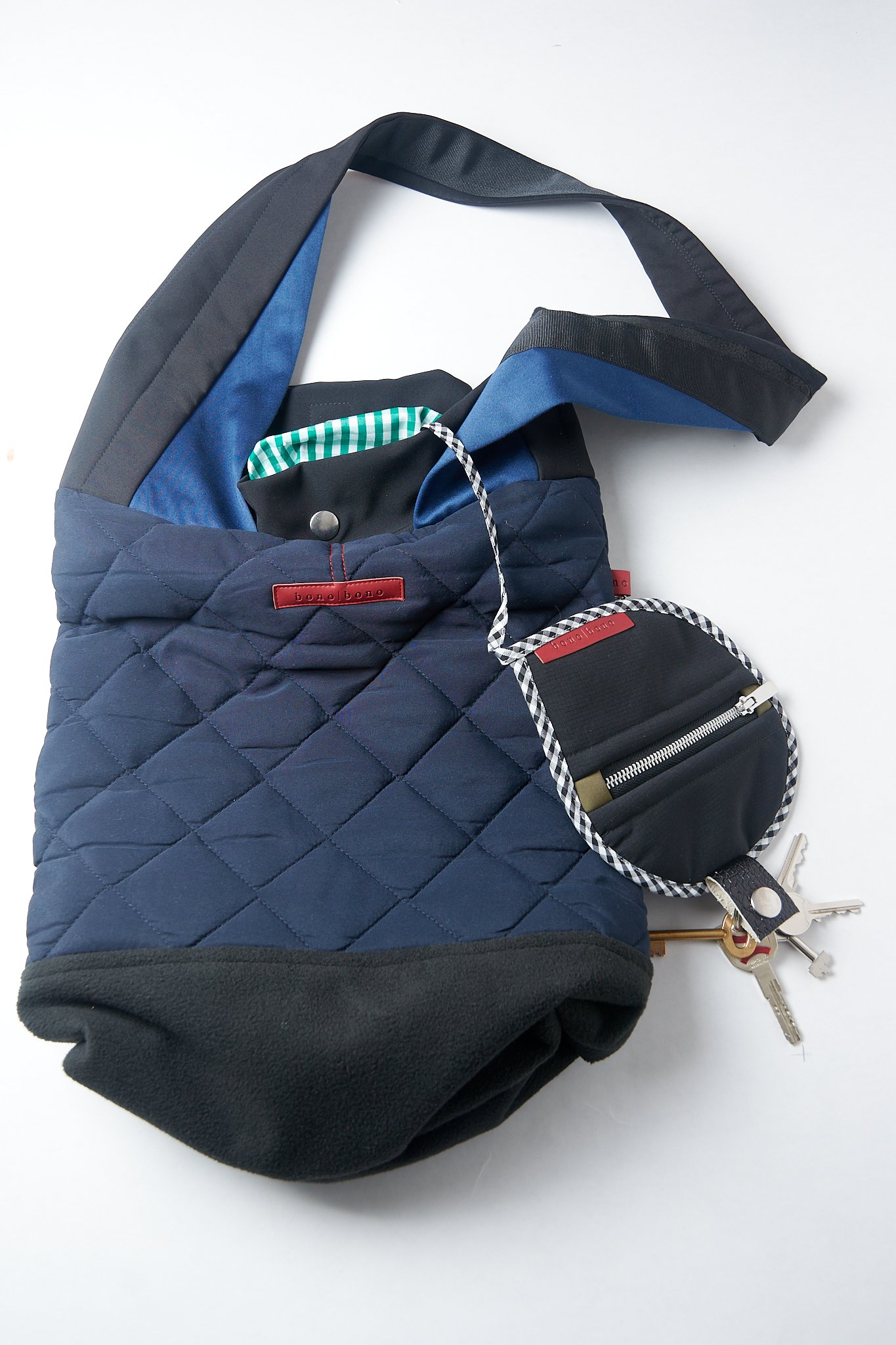 Bolso rectangular con bolsillo y monedero extraíble con llavero, completamente forrado