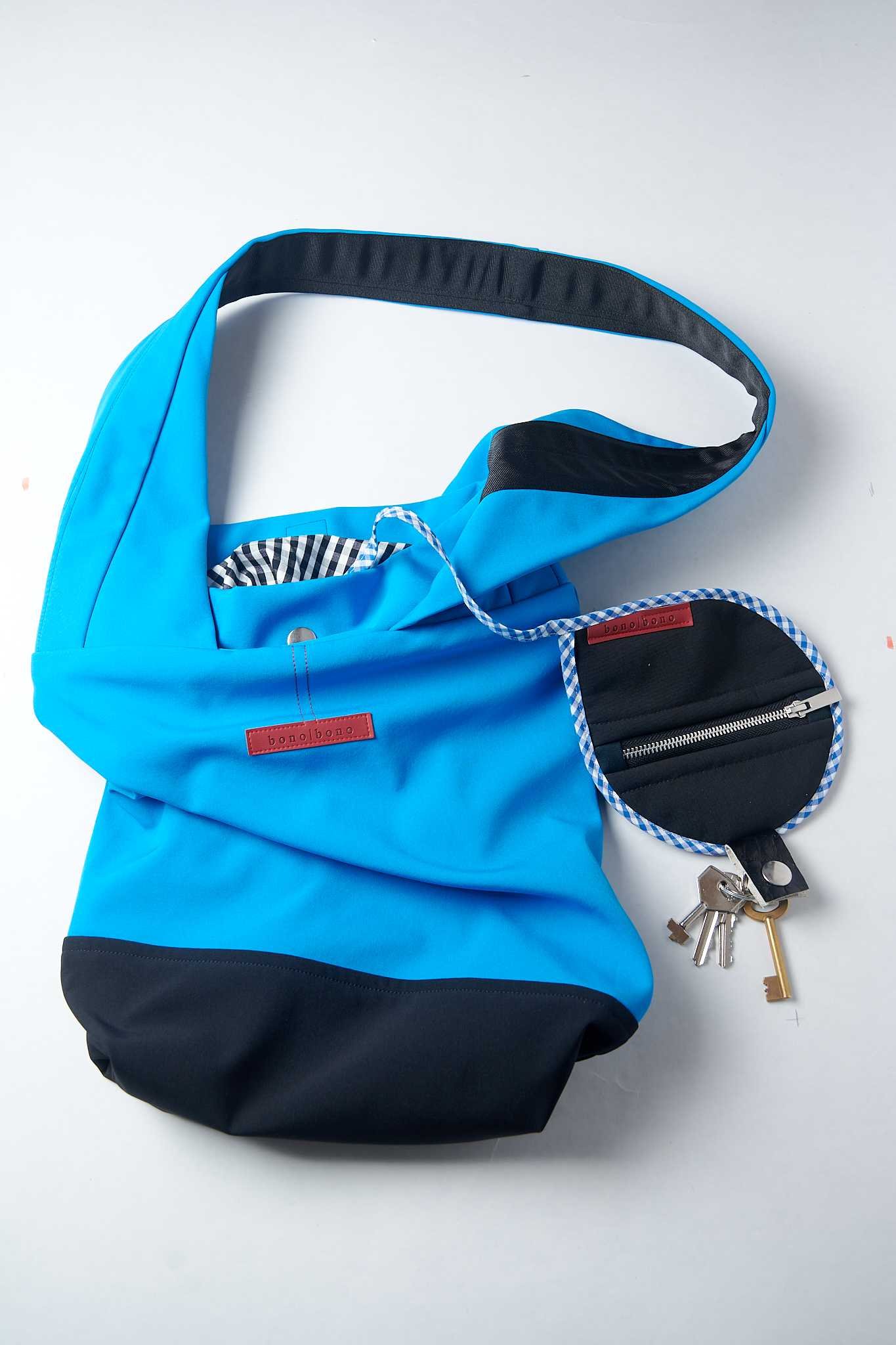 Bolso rectangular con bolsillo y monedero extraíble con llavero, completamente forrado