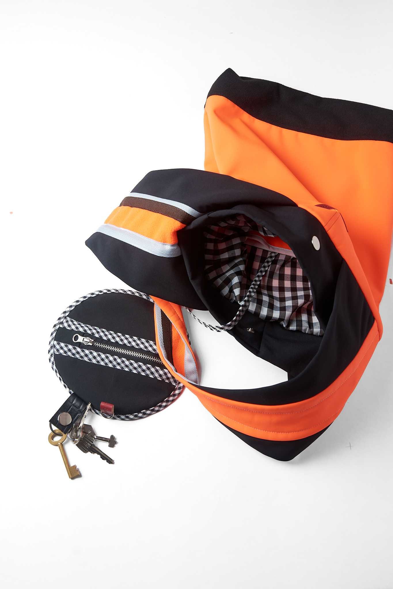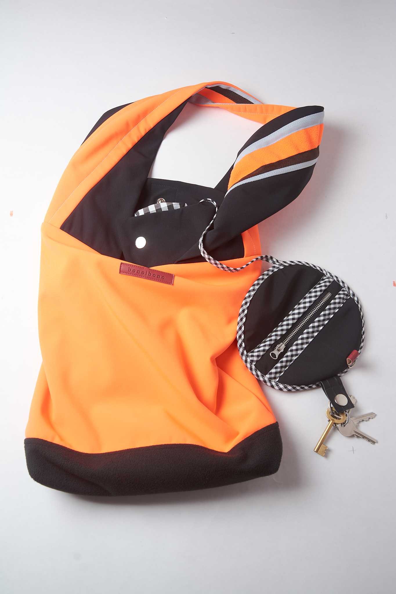 Bolso rectangular con bolsillo y monedero extraíble con llavero, completamente forrado