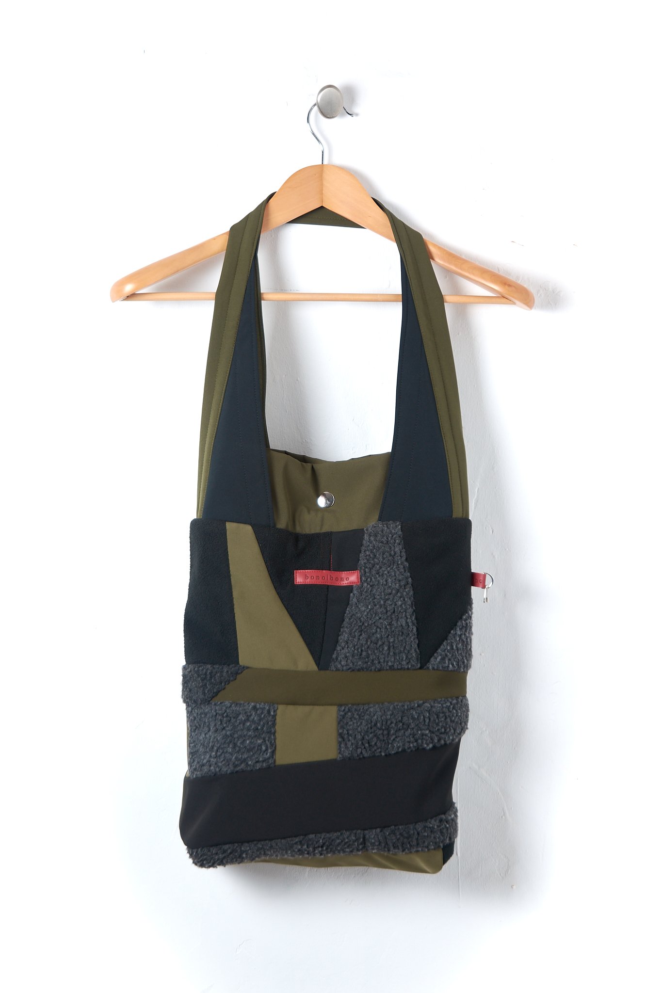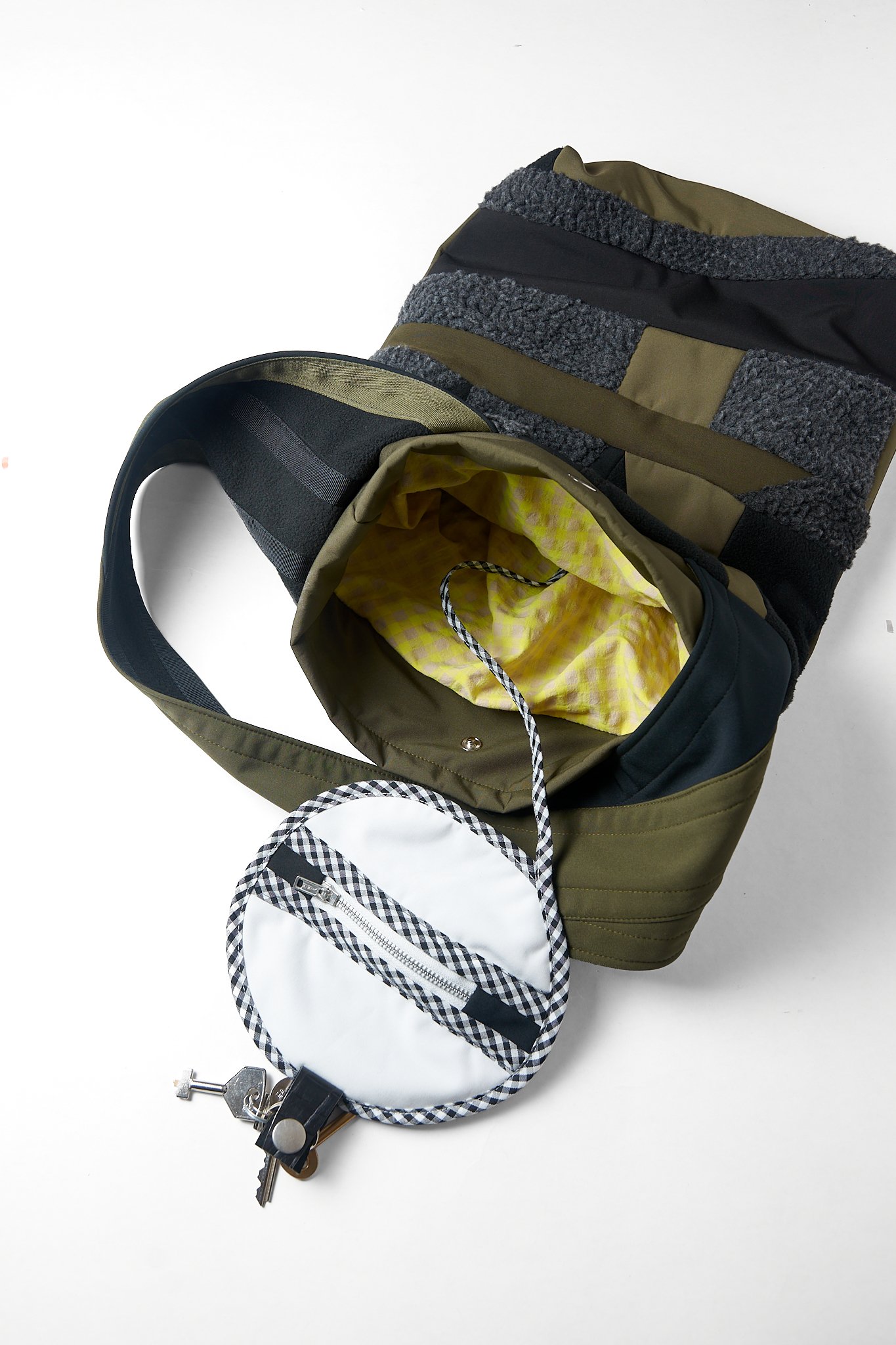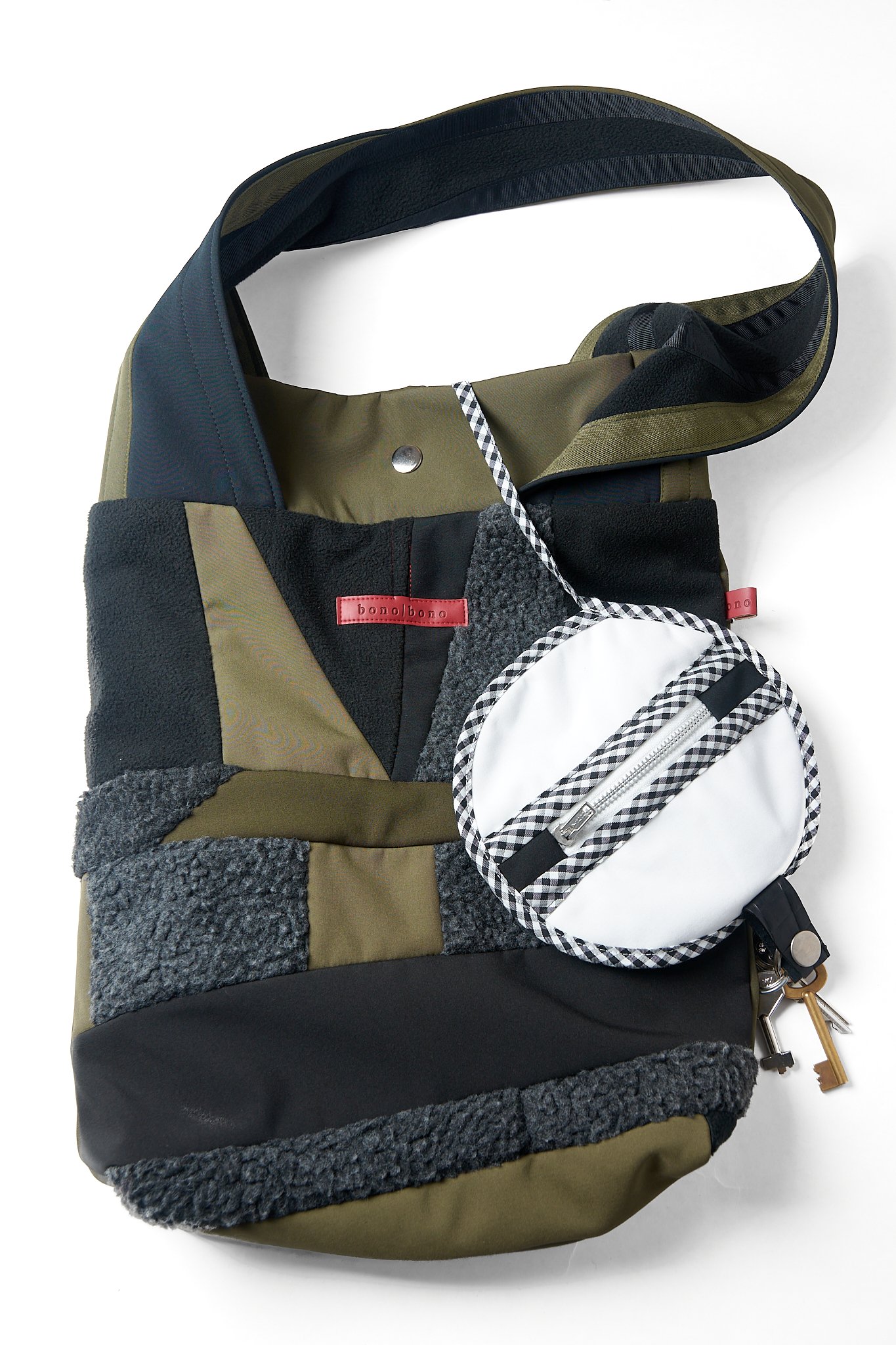Bolso Patchwork rectangular con bolsillo y monedero extraíble con llavero, completamente forrado