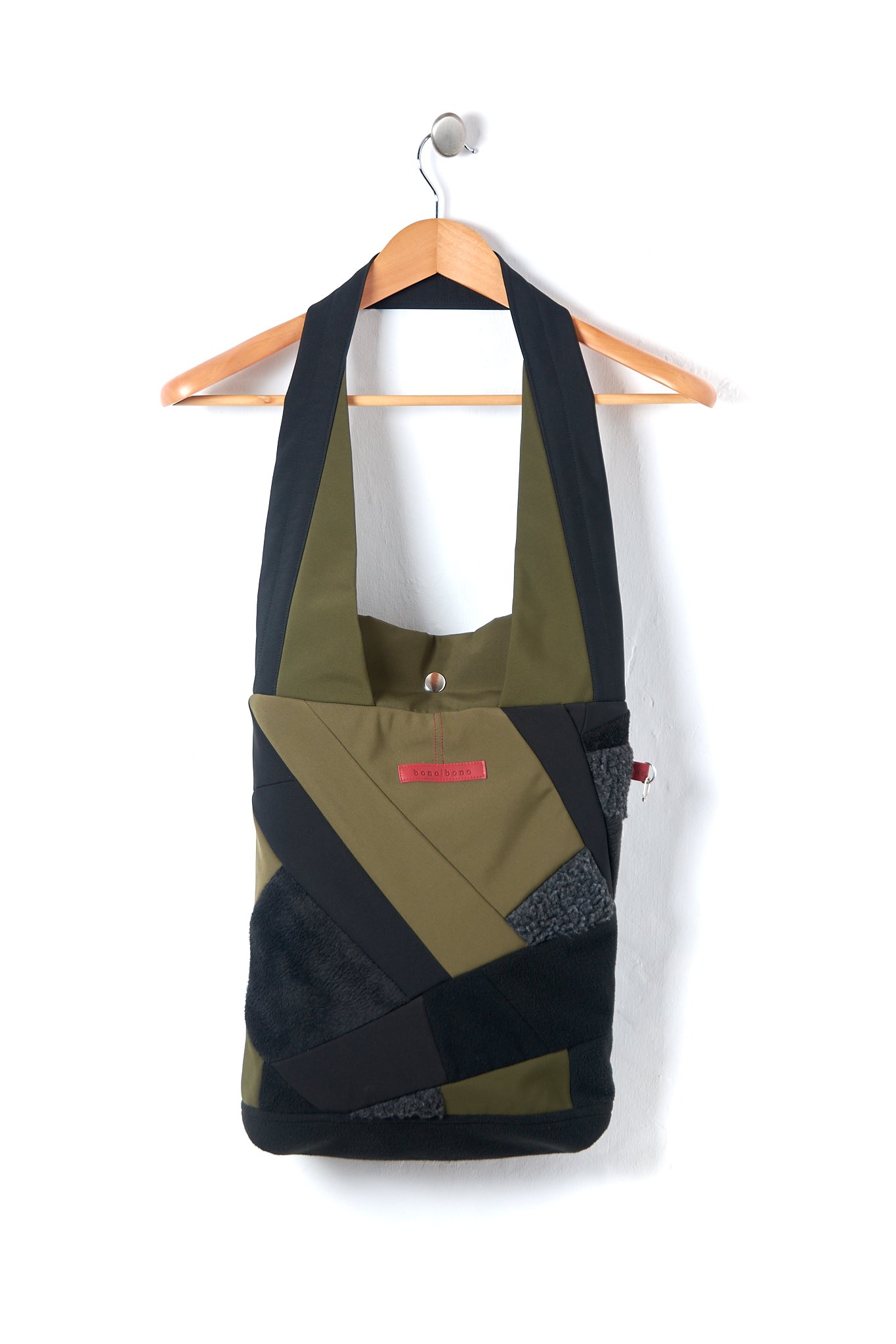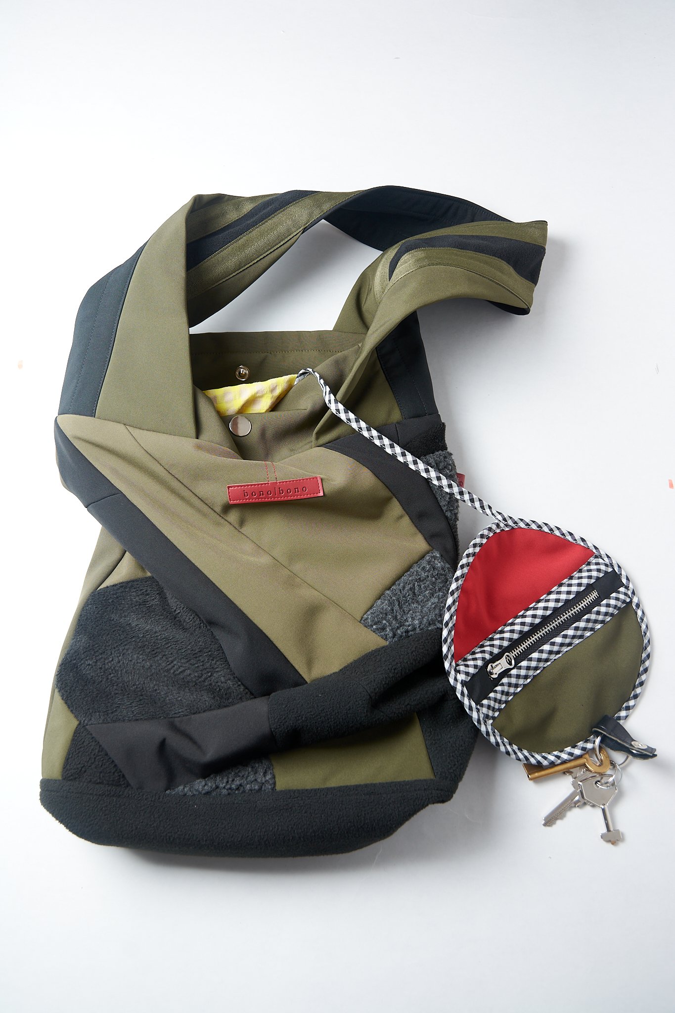 Bolso Patchwork rectangular con bolsillo y monedero extraíble con llavero, completamente forrado