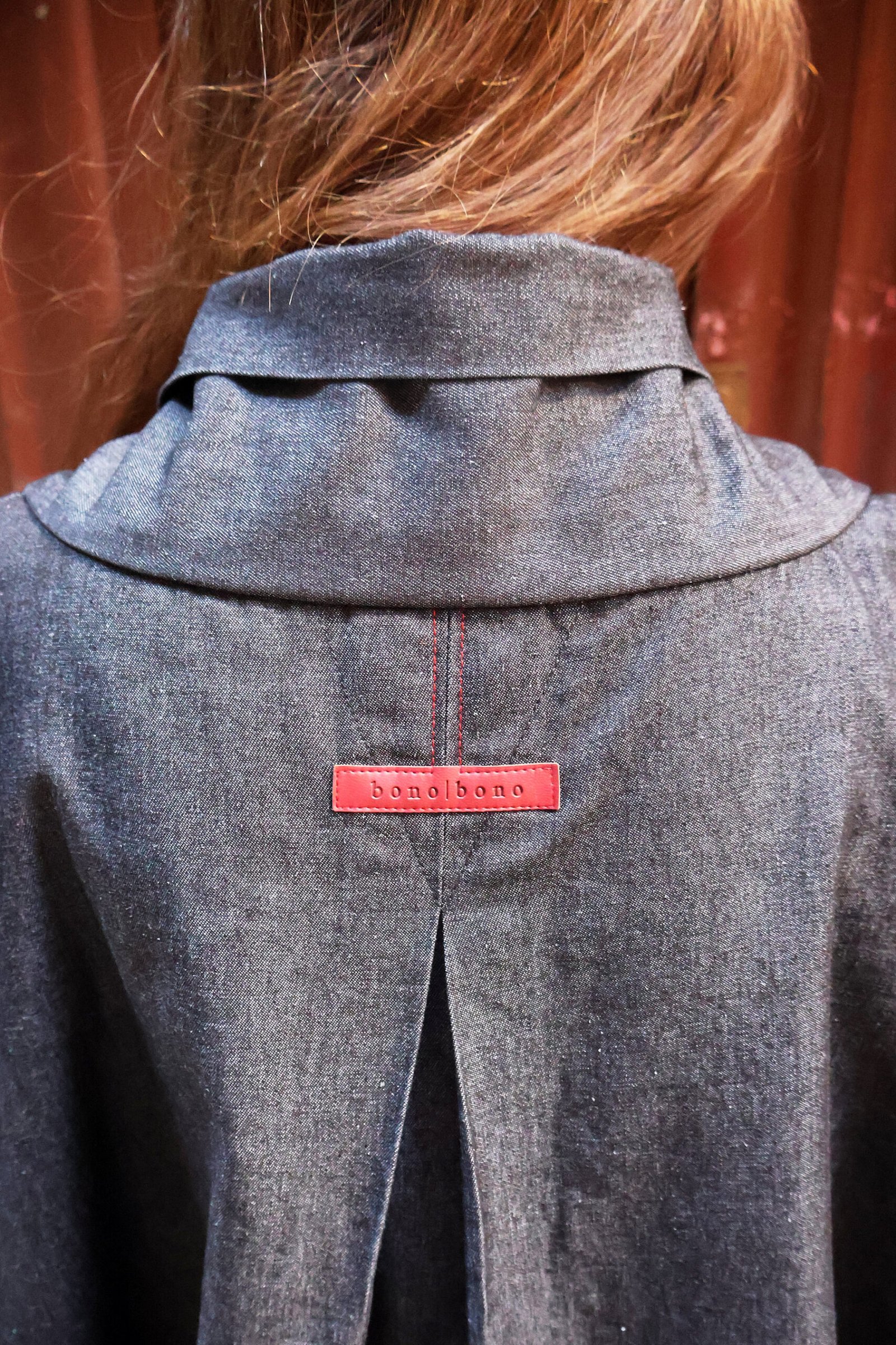 Acabados de Sastrería: Cuello con solapa y tabla encontrada en la espalda para mayor amplitud.